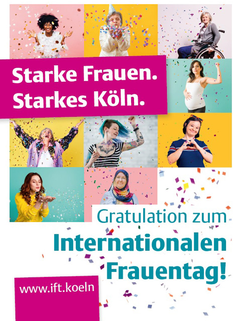 Die Oberbürgermeisterin, die Gleichstellungsbeauftragte sowie das "Aktionsbündnis IFT" laden Kölner*innen am Samstag, 8. März 2025, zu Veranstaltungen in den Kulturbunker Mülheim und ins Historische Rathaus ein. Der Eintritt ist frei und ohne Anmeldung möglich.