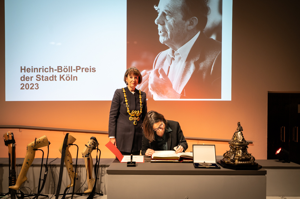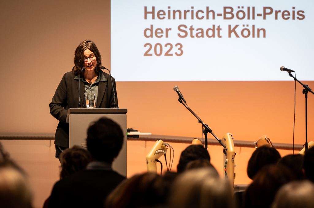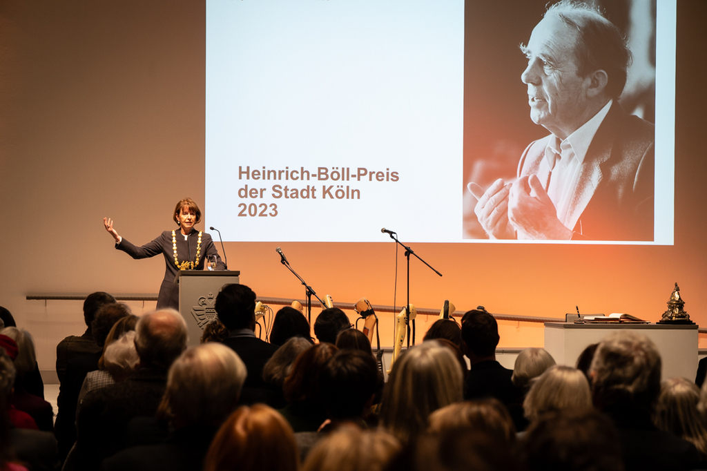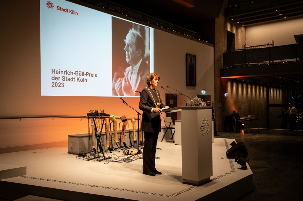 Die Verleihung des Heinrich-Böll-Preises hat für mich auch ganz persönlich eine ganz besondere Bedeutung. Denn meine erste Veranstaltung als Oberbürgermeisterin war im Herbst 2015 die Preisverleihung an die Autorin Herta Müller. Kurz vor Ende meiner Amtszeit war es mir daher ein besonderes Anliegen, die Preisträgerin im Jahr 2025 mit auszuwählen. Ich bin froh, dass die Jury sich für Heike Geißler entschieden hat. Sie ist eine literarische Stimme, die im Sinne Heinrich Bölls gesellschaftliche Wirklichkeit sichtbar macht und Sprachräume für jene öffnet, die meist übersehen werden. Ich gratuliere der Preisträgerin herzlich.
