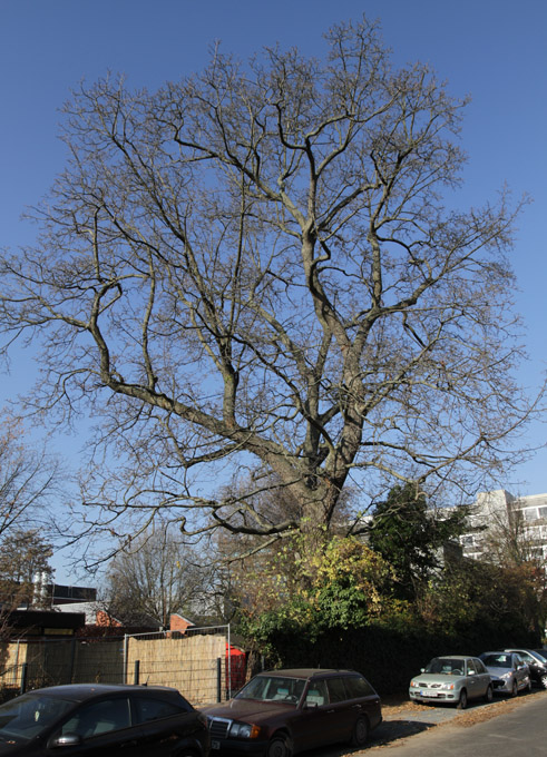 Die sehr schön gewachsene Schwarznuss hat durch ihre Größe sowie ihre exponierte Stellung einen großen visuellen Wirkungsbereich im Verlauf der Weyertalstraße und dem hier abzweigenden Fuß- und Radweg zum Universitätsgelände.