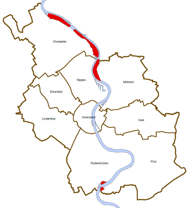 Die Naturschutzgebiete "Rheinaue Worringen-Langel", "Rheinaue Langel-Merkenich", "Flittarder Rheinaue" und "Langeler Auwald rechtsrheinisch" wurden im Landschaftsplan der Stadt Köln vor allem wegen der noch vorhandenen naturnahen Auenbereiche mit Resten des Silberweidenwaldes, Röhricht- und Hochstaudenbeständen sowie Schlamm- und Kiesbänken und der Abgeschiedenheit als Refugium für gefährdete Vogelarten unter Schutz gestellt.