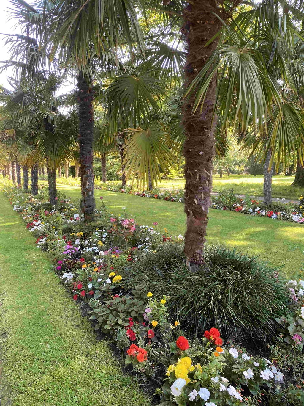 So können Sie heimische Nutzpflanzen im "Rheinischen Bauerngarten" und in einem Nutzpflanzengarten entdecken. Hier können Sie auch mit Ihren Kindern die "Primärressourcen" für Röggelchen (Roggen) und Kölsch (Gerste, Hopfen) entdecken – und auch für den "Halven Hahn" – denn Gouda-Käse ist ja nichts anderes als verdeltes Gras! Die Vielfalt der Vegetation der Gebirge der Welt mit circa 1.500 Arten werden im Alpinum, dem Gebirgsgarten, präsentiert. Irisgarten, Liliengarten und Schmuckstauden kultivieren botanische und gärtnerische Spezialitäten. Die Gartenachse nach Norden schmückt seit 2008 Nordeuropas einzige, ausgepflanzte Palmen-Allee mit 30 winterharten Hanfpalmen, unterbepflanzt mit sommerlichen "Mille-Fleurs"-Beeten.