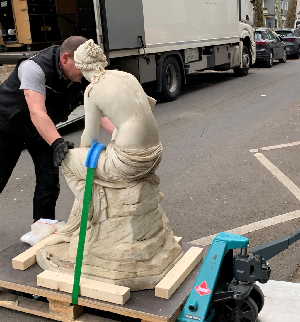 Als erster Schritt der Maßnahme hat der Transport der Statue vom LVR in Brauweiler nach Köln in die TH stattgefunden, wo die Studie und Arbeiten an der Statur über die kommenden Monate erfolgen werden.
