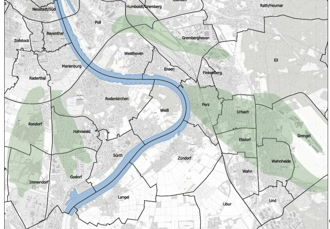 Diese Schadstofffahnen sind in der nebenstehenden Abbildung dargestellt. Sie weisen die Flächen im Stadtgebiet Köln aus, in denen im Grundwasser mindestens 0,1 Mikrogramm pro Liter Summe aller PFC nachgewiesen wurden.