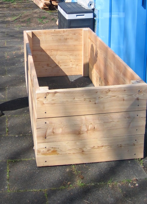 - Hochbeetkasten so auf den Mäusedraht setzen, dass keine Lücken bleiben