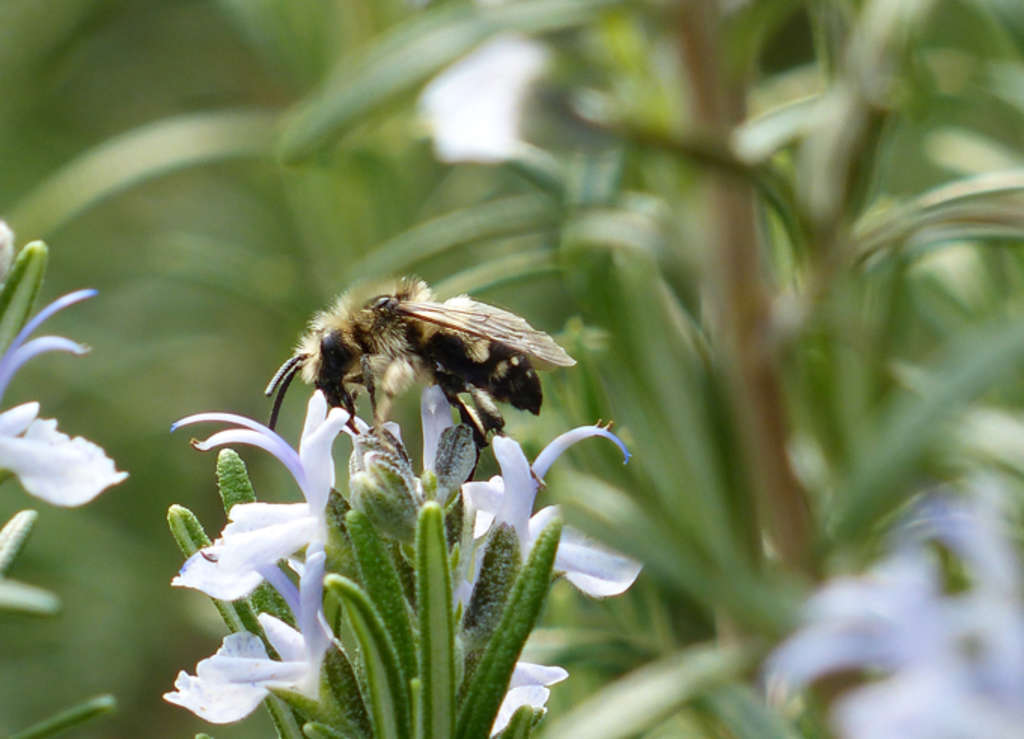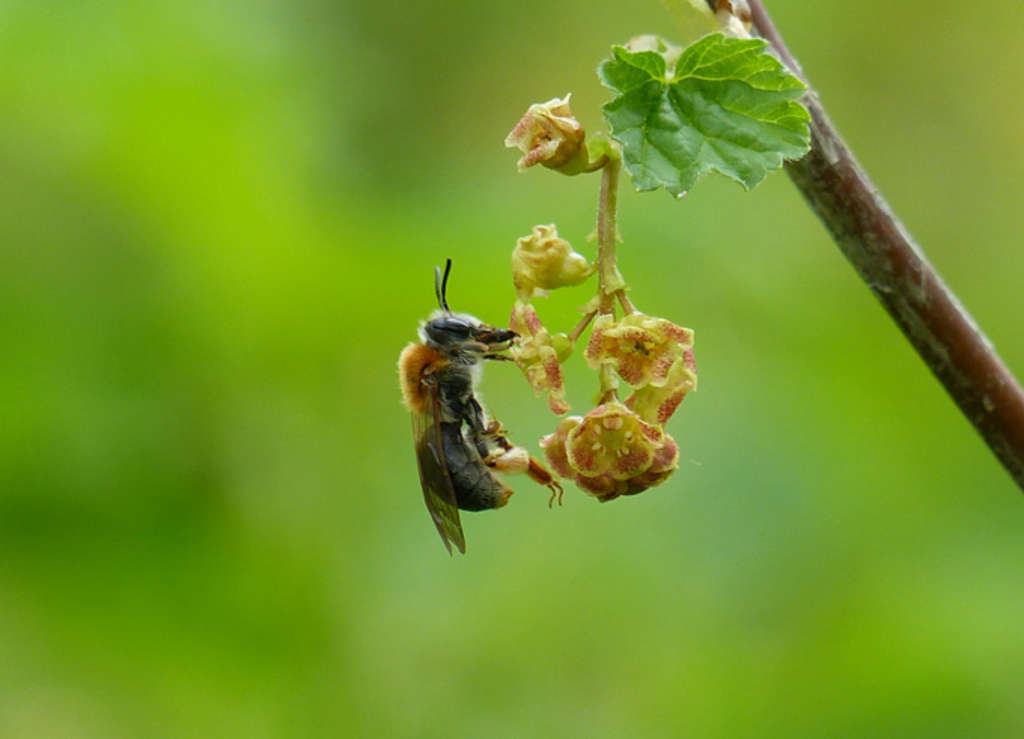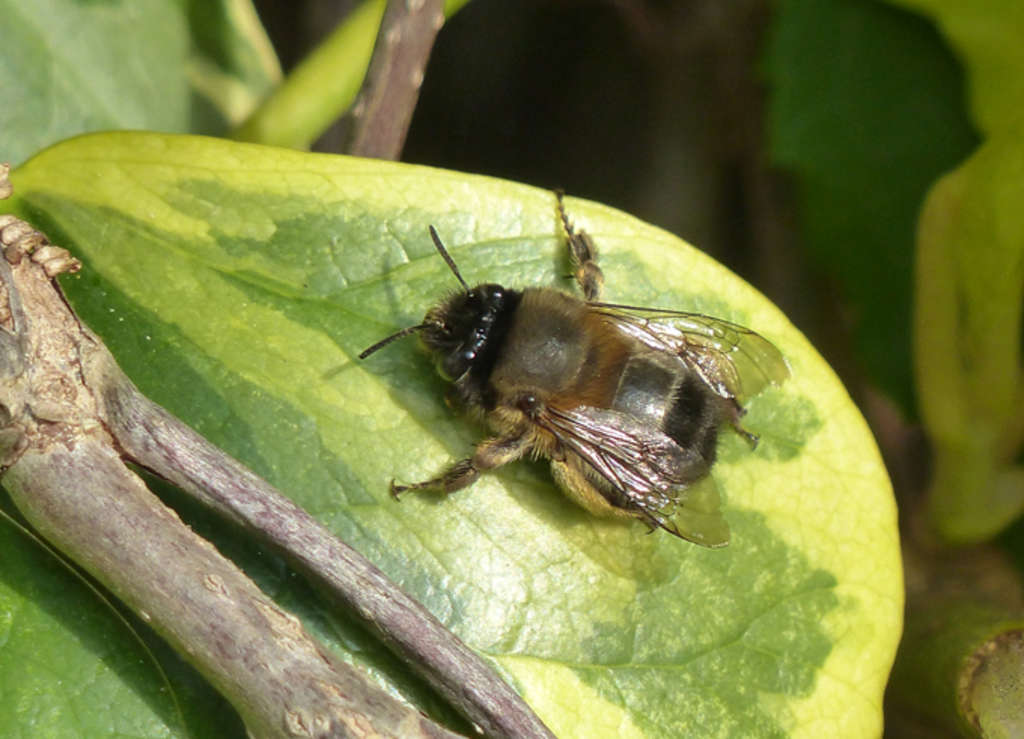 Neben der Frühligspelzbiene können auch bereits die Fuchsrote Sandbiene, die Hahnenfußscherenbiene und die Rotschopfige Sandbiene gut beobachtet werden. Ob wohl auch die Blauschwarze Holzbiene ihren Weg hierher findet?