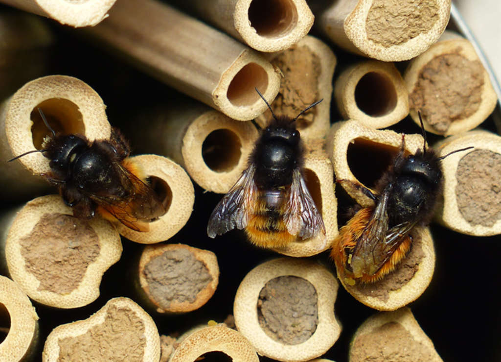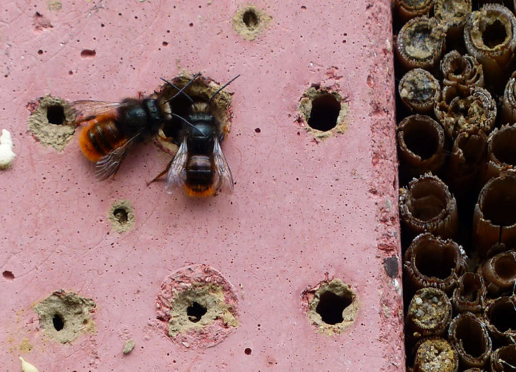 Gehörnte Mauerbiene - häufige Besucherin an Nisthilfen