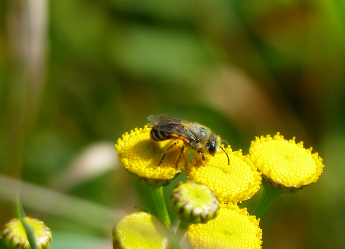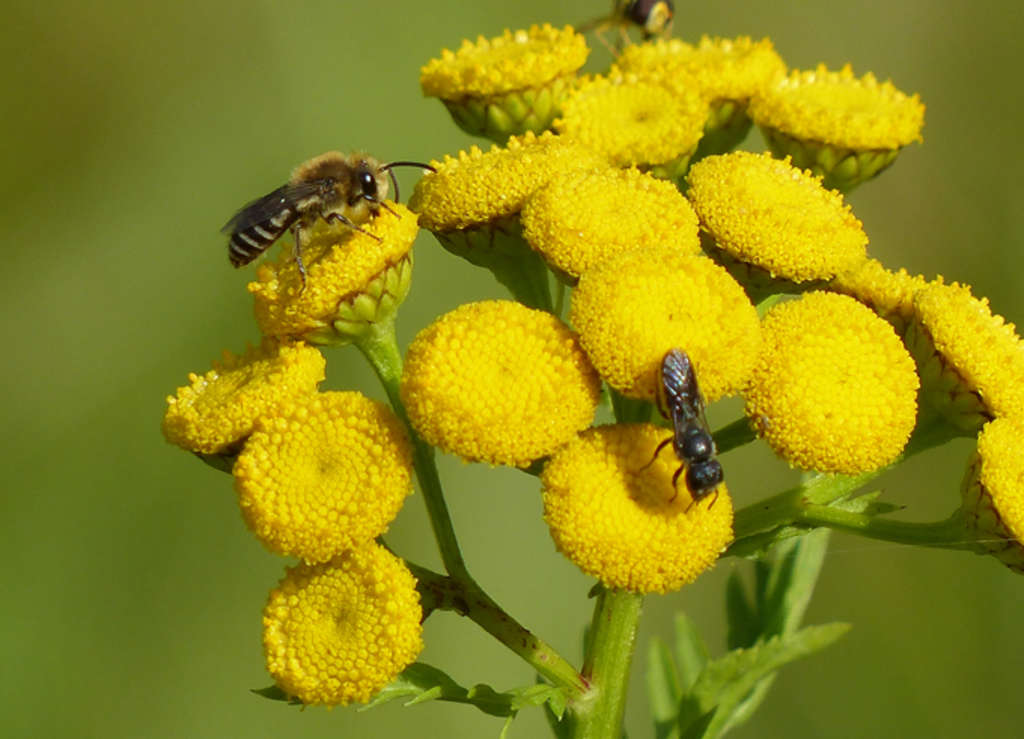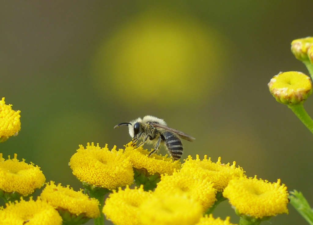 Die Gemeine Seidenbiene ist eine der häufigsten Arten im Siedlungsraum und daher auch in Köln noch oft zu finden. An heißen Augusttagen kann man sie vor allem auf Rainfarn, ihrer bevorzugten Speise, beobachten. Emsig sammeln die Weibchen dort Nektar und Pollen zur Versorgung ihrer Nachkommen. Aber auch die Männchen findet man dort. Schließlich ist es der beste Platz, um ein Weibchen ausfindig zu machen. Die Gemeine Seidenbiene ist, wie die anderen Seidenbienen auch, ein Bodennister. Das Nest wird dabei in Abbruchkanten angelegt. In diese wird ein Gang gegraben, der anschließend in kleine Kammern unterteilt, mit Pollen und einem Ei bestückt und dann verschlossen wird. Den gemeinen Seidenbienen kann man übrigens leicht helfen. Da sie an den Nistplatz keine allzu großen Anforderungen stellen, reicht es oft schon aus, im Staudenbeet oder einer wilden Ecke im Garten ein wenig Rainfarn anzusiedeln.