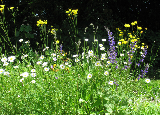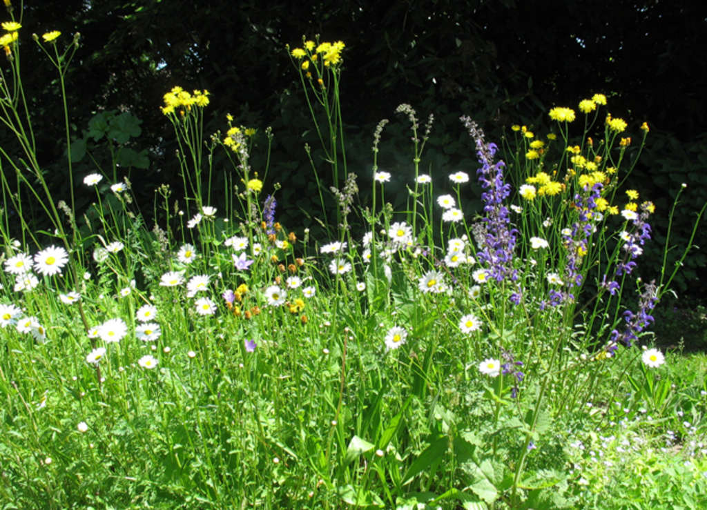 Ideale Bedingungen für Wildbienen sind: trocken- sonnig und viele Blüten. Naturnahe Wiesen erfüllen diese Kriterien besonders gut. Bei richtiger Pflege findet man auf Wiesenflächen von Frühjahr bis Hochsommer ein großes Blühangebot. Dieses lockt nicht nur unzählige Wildbienen sondern auch viele andere Insekten und ihre Räuber an und macht die Wiese zu den artenreichsten Lebensräumen Mitteleuropas.