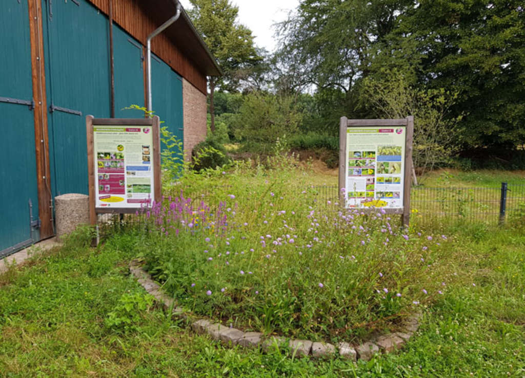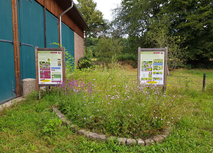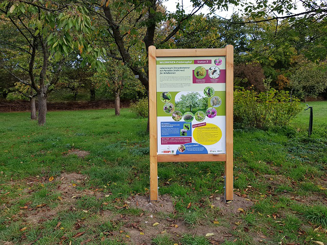Ein Infoschild informiert über die Schutzbedürftigkeit der Fläche. Die Anschauung vor Ort soll insbesondere die Akzeptanz von Natur im öffentlichen Raum verbessern und dazu beitragen, eigene Projekte bei den Bürgerinnen und Bürgern zu initiieren.