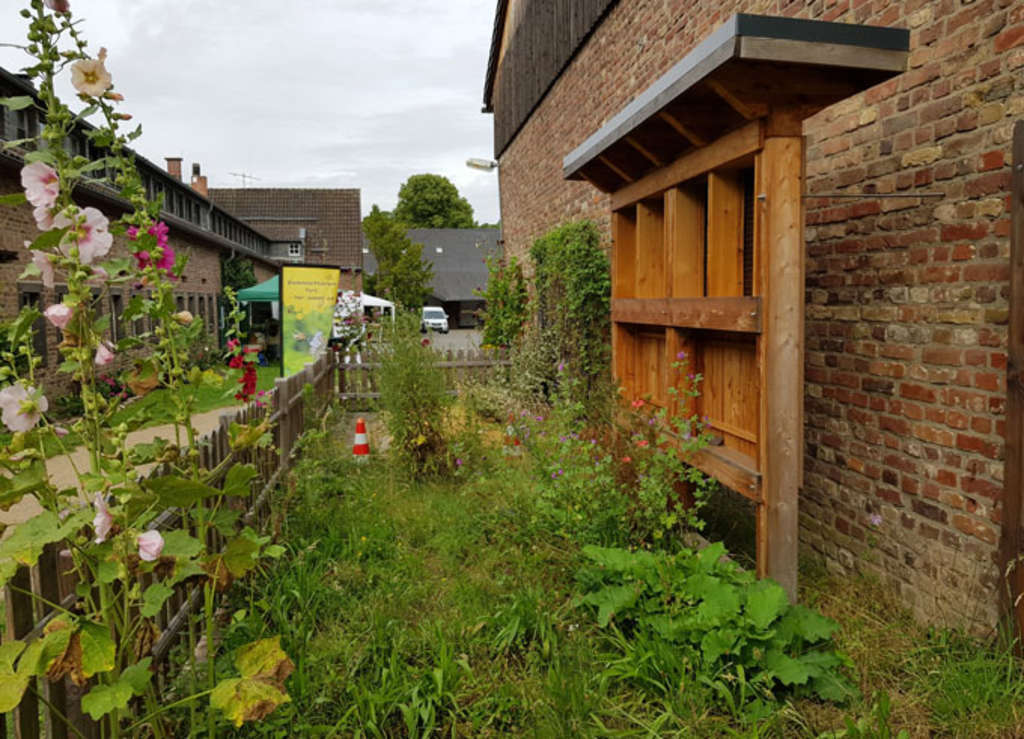 Wer an einen Bauerngarten denkt, hat eine viereckige Fläche vor Augen, die aufgeteilt ist in vier gleich große Teilflächen und die mit kurz geschnittenen Buchsbaumhecken umsäumt sind. Dazwischen befinden sich Wege und in der Mitte ist ein kleiner Platz. In den Beeten wachsen Gemüse und ein paar prächtige Bauerngartenblumen. Warum nicht mal den Bauerngarten neu interpretieren - als Wildbienen-Bauerngarten?! So geschehen an der GGS Schmittgasse. Mit finanzieller Unterstützung von Fielmann und tatkräftiger Hilfe der Kinder der Schulgarten-AG, von Eltern und Mitarbeiterinnen und Mitarbeitern der OGS sowie mit Hilfe des BUND Köln wurde ein Teil des Schulgartens als Bauerngarten angelegt.