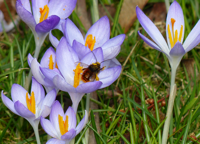 Bereits im zeitigen Frühjahr fliegt die Pelzbiene, immer auf der Suche nach Pollen und Nektar, eifrig von Blüte zu Blüte. Stark behaart und relativ groß ist sie dabei leicht mit einer Hummel zu verwechseln. Bei genauem Hinschauen kann man sie aber an den stark behaarten Beinen und der Gesichtsmaske gut unterscheiden. Das Nest für den Nachwuchs legt das Weibchen der Pelzbiene in Lehmwänden an. Mit Hilfe seiner harten Mundwerkzeuge bohrt es die Gänge dabei selbst. Da auch die Fugenbereiche alter Ziegelmauern genutzt werden, ist die Pelzbiene ein häufiger Gast in den Parks und Gärten der alten Siedlungskerne geworden. Durch Modernisierungen gehen inzwischen leider viele Nistmöglichkeiten verloren. Mit einer senkrecht aufgestellten Kiste, gefüllt mit Lehm kann man der Pelzbiene ohne viel Aufwand helfen. Allerdings benötigt sie, wie alle Wildbienen, ein gutes Nahrungsangebot in Form von heimischen Blütenpflanzen. Dabei kann die Pelzbiene viele Blüten, wie zum Beispiel Lerchensporn oder Blutjohannisbeere als Nahrungsquelle nutzen. Ihre Lieblingspflanze jedoch ist das Lungenkraut. Wer dieses im Garten hat, wird meist mit dem kolibriartigen Schwirrflug des ansonsten eher plump anmutenden Gastes belohnt. Übrigens: Die langen Haare und der Dorn der Männchen an den Beinen dienen dazu, bei der Paarung das Weibchen zu umklammern und ihm die Augen zuzuhalten, damit es nicht flüchten kann.