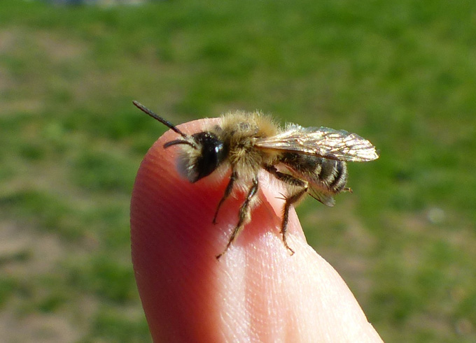 Und keine Angst: Wildbienen sind für Menschen ungefährlich. Sie können sich ihnen gefahrlos nähern.