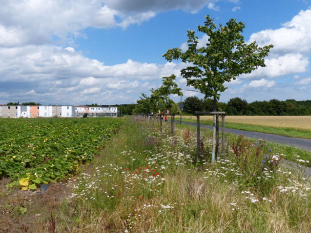 Um Naturerleben auch im direkten Wohnbereich zu ermöglichen, wurden in einem Kooperationsprojekt des Amtes für Wohnungswesen mit dem Umwelt- und Verbraucherschutzamt und dem BUND Köln e. V. die Außenanlagen einer Sozialsiedlung naturnah gestaltet. Neben dem Anpflanzen von Obstgehölzen wurden eine Wildwiese eine naturnahe Hecke und Gemüsebeete angelegt, sowie Nisthilfen für Insekten, Fledermäuse und Vögel installiert. Die begleitende Naturerlebnisgruppe konnte nicht nur Akzeptanz für die Maßnahmen schaffen, sondern führte die Kinder auch spielerisch an die Natur heran. Gemeinschaftsfeste mit Gemüse aus dem eigenen Anbau haben darüber hinaus den Zusammenhalt der Bewohner gefördert. Aufgrund der guten Resonanz soll das Projekt an weiteren städtischen Wohnanlagen umgesetzt werden und so ein Gegenstück zu den allseits immer beliebteren Schottergärten bilden.