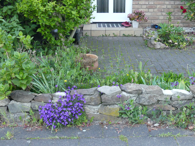 Allerdings werden immer häufiger vormals grüne Vorgärten, "pflegeleicht" umgestaltet. In Folge dessen versiegeln Pflaster oder Schotter den Boden, Regen kann nicht mehr versickern, die Fläche heizt sich im Sommer auf und Tiere finden keine Nahrung mehr.