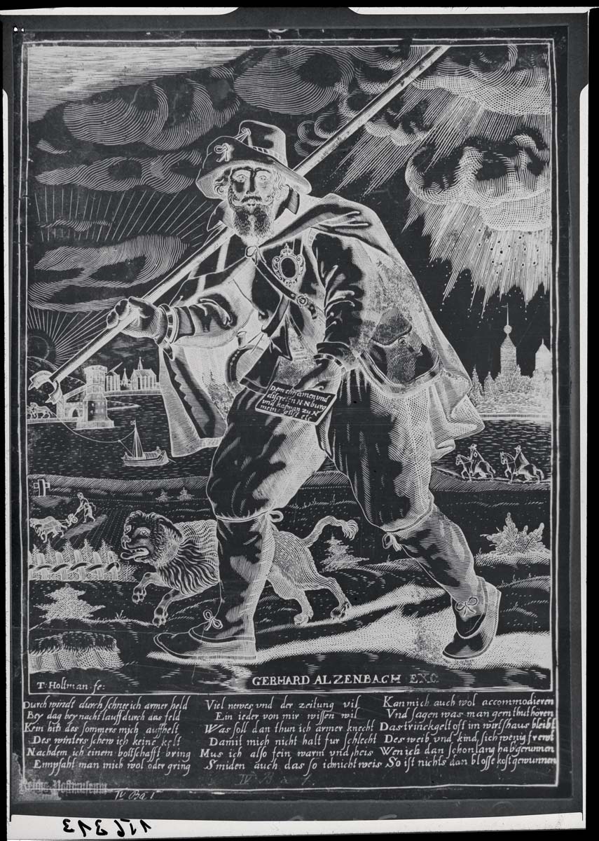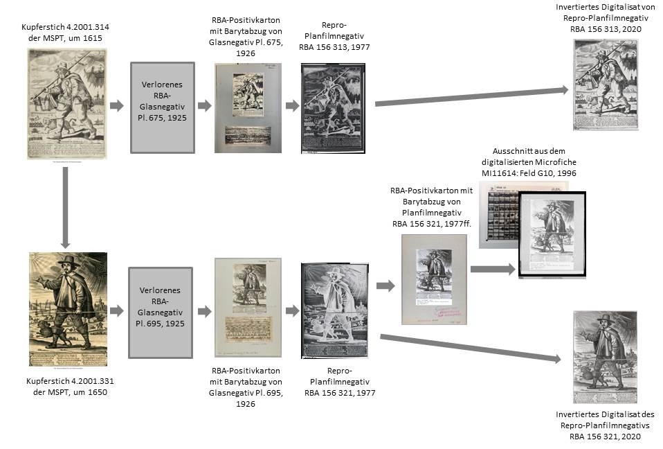 Der Nürnberger Postboten-Kupferstich wurde 1977 für den Microfiche-Katalog "Marburger Index – Inventar der Kunst in Deutschland", in den rund 300.000 Fotografien aus dem Rheinischen Bildarchiv aufgenommen wurden, ausgewählt. Zu diesem Zeitpunkt war das Glasnegativ Pl. 695 anscheinend nicht mehr verfügbar. Deshalb wurde der Barytabzug – erkennbar an der knapp angeschnittenen Aufschrift Pl. 695 – von dem um 1926 entstandene Positivkarton auf 13 x 18 Zentimeter Planfilm abfotografiert und als RBA 156 321 archiviert.