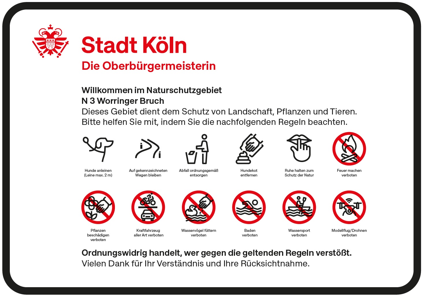 - ausschließlich die für Begehungen vorgesehenen Wege nutzen. Dieses sind im Worringer Bruch der Senf- und Erdweg sowie der Verbindungsweg vom Bruchweg zum Weg "Am Blutberg"