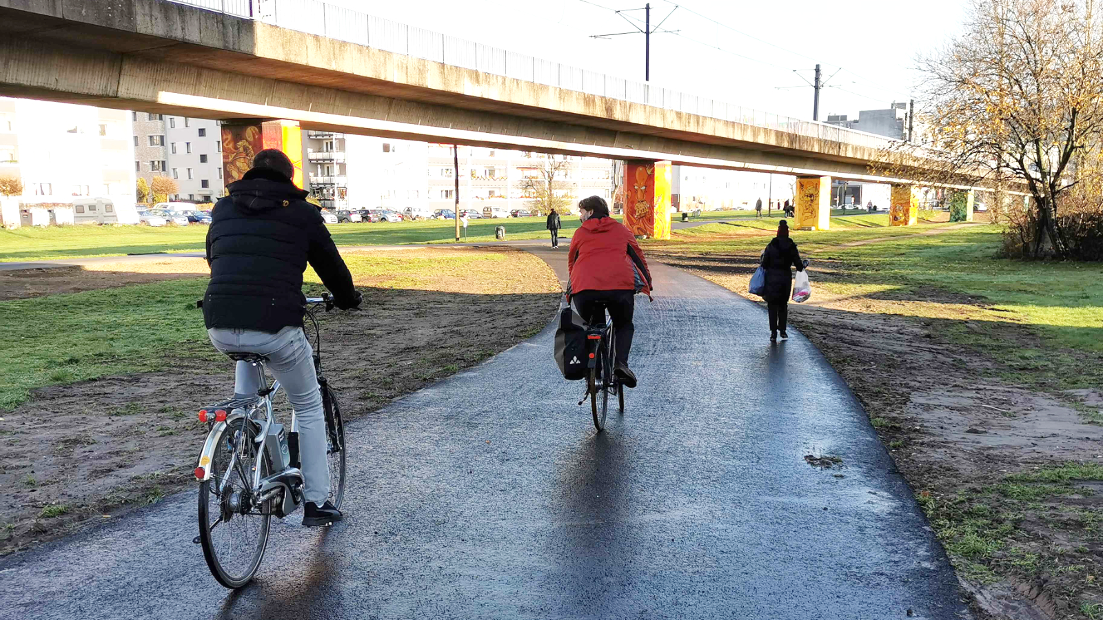 - Zwischen Merheimer Straße und Amsterdamer Straße entsteht eine Parklandschaft: der GrünZug Nippes. Wir stimmen die Verkehrs- und Grün-Planung eng aufeinander ab. Wir bauen einen fünf Meter breiten, in zwei Richtungen befahrbaren und vom Fußverkehr abgetrennten Radweg.
