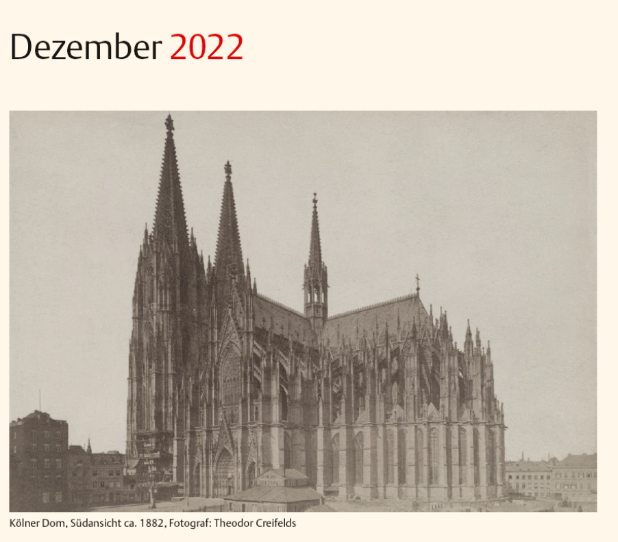Mit dem Kalendarium 2022 bringen wir zum 16. Mal unseren alljährlichen Themen-Kalender heraus. Unter dem Titel "Altes Köln" laden wir Sie auf eine Zeitreise in das Köln der Vorkriegsjahre ein.