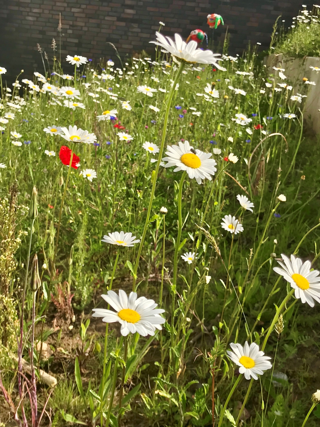 Auf dem Gelände des ehemaligen Flüchtlingscamps in Rodenkirchen entstand auf einer Fläche von 2.500 Quadratmeter ein wunderschöner Naturgarten, der von ehrenamtlichen Helfer*innen des BürgerTreff X gepflegt wird.