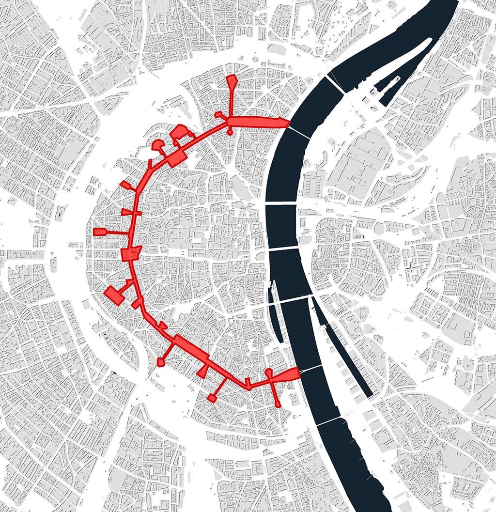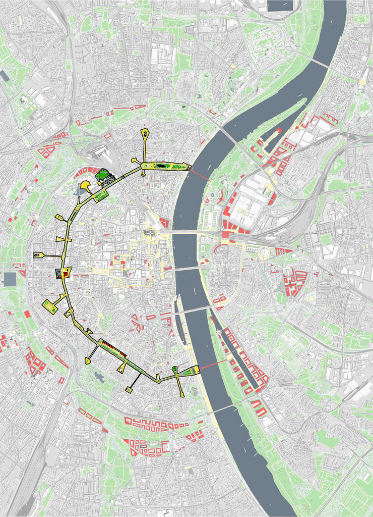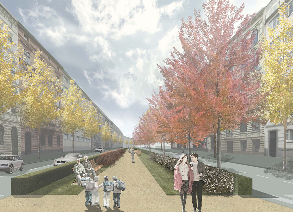 2011 haben wir mit drei Planungsteams die interdisziplinäre Planungswerkstatt Kölner Ringstraßen durchgeführt. Unser Ziel war es, für die sechs Kilometer lange Ringstraße und die darin liegenden sieben Plätze ein gestalterisch anspruchsvolles Rahmenkonzept zu entwickeln. Die Plätze sollten dabei als integrierte Bestandteile betrachtet werden. An der Führung der Stadtbahn sollte festgehalten und die verkehrliche Bedeutung der Ringstraßen nicht eingeschränkt werden. Die Maßgaben der Barrierefreiheit sollten dabei integriert werden. Aus den Konzepten der Planungsteams wurde eine praxisorientierte Leitlinie entwickelt, die als eine Art "Regiebuch" für die künftige Entwicklung der Ringe verstanden werden soll. Darin ist eine durchgängige Materialität für sämtliche Oberflächen vorgegeben. Festgeschrieben sind außerdem ein charakteristischer Leuchtentyp sowie eine Stadtmöblierung, deren Auswahl die gestalterische Handschrift und Einheitlichkeit der Ringe unterstützt. Bei allen zukünftigen baulichen und freiraumplanerischen Vorhaben im Bereich der Kölner Ringstraßen sind nun die Vorgaben dieser Leitlinie zu beachten.
