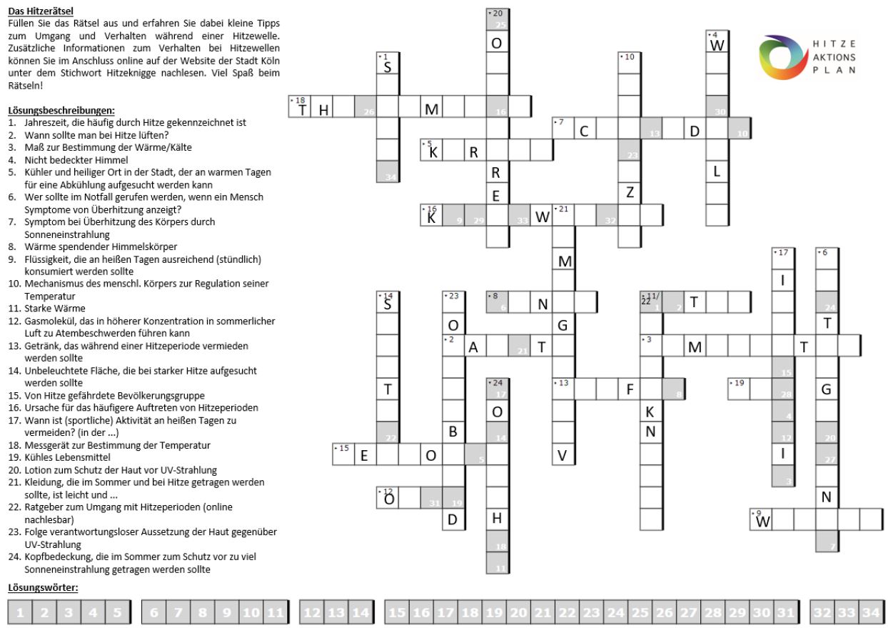Die Anzahl heißer Tage und der Sommertage in Köln nehmen durch den Klimawandel zu. Die Folge sind immer häufigere und längere Hitzeperioden mit Temperaturen von mehr als 30 Grad Celsius. Das bedeutet jedoch nicht nur mehr sonnige Tage mit blauem Himmel und Badewetter, sondern zunehmend auch aufgeheizte Stadtquartiere und kaum nächtliche Abkühlung. Dies kann für den Menschen belastend sein und schränkt die Leistungsfähigkeit ein. Das Umweltbundesamt (UBA) stellt zur Sensibilisierung der Bevölkerung bei Hitzeereignissen den sogenannten Hitzeknigge zur Verfügung. Die Broschüre umfasst nützliche Hinweise und Tipps zum Umgang bei Hitze und wurde im Rahmen des Projektes "Hitzeaktionsplan für Menschen im Alter für die Stadt Köln" in Kooperation mit lokalen Akteur*innen und Institutionen speziell für Köln weiterentwickelt. Der Kölner Hitzeknigge führt lokale Informationen, Beratungsangebote und Besonderheiten auf.