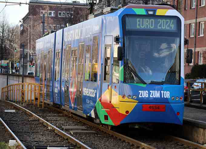 Durch Köln fährt seit Februar eine Bahn im Design beider Europameisterschaften 2024
