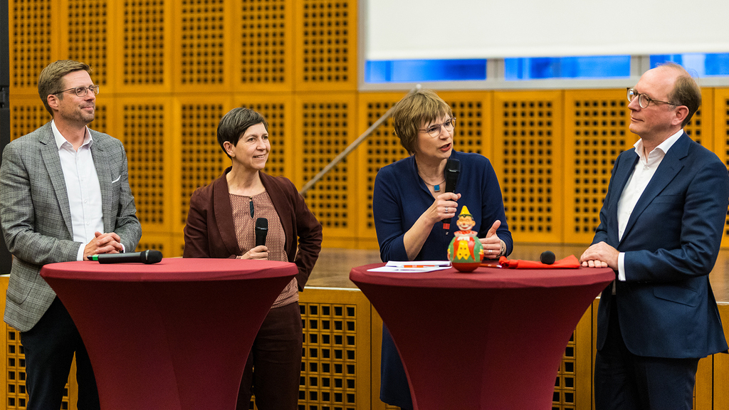Im Anschluss moderierte Petra Vossebürger vom Büro IKU_ Die Dialoggestalter aus Dortmund die Diskussionsrunde anhand der drei Schwerpunktthemen. Im Ergebnis waren sich die Diskutant*innen einig, dass digitale Anwendungen und Instrumente eine Bereicherung für die urbane Entwicklung und Resilienz sind und hier noch viel "ungehobenes Potenzial" besteht. Dies gilt insbesondere für die Koordination der Nutzung und Entwicklung städtischer (Infra-) Strukturen. Das Instrument des digitalen Zwillings birgt ein hohes Potenzial, Projekte und Prozesse zu beschleunigen und zu vereinfachen.