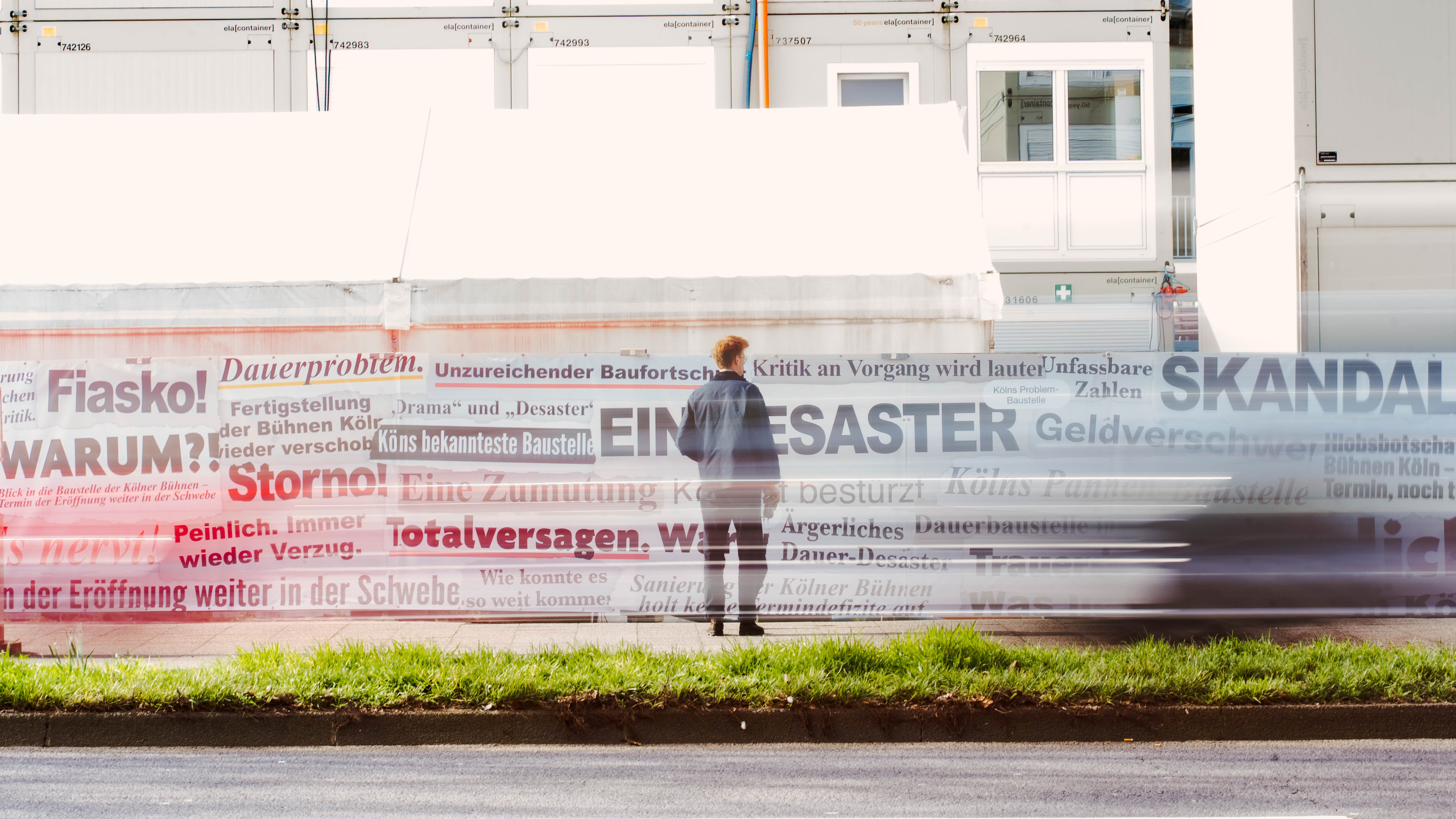 Am 6. März 2026 haben wir den Bauzaun am Offenbachplatz neu gestaltet – bewusst als "Frustzaun". Auf rund 90 Metern Länge zeigt er markante Schlagzeilen aus den vergangenen Jahren zur Sanierung der Bühnen. Damit greifen wir die öffentliche Debatte auf und machen deutlich: Wir blenden die Geschichte dieses Ortes nicht aus, sondern setzen uns mit ihr auseinander, um neue Perspektiven für die Zukunft zu entwickeln.