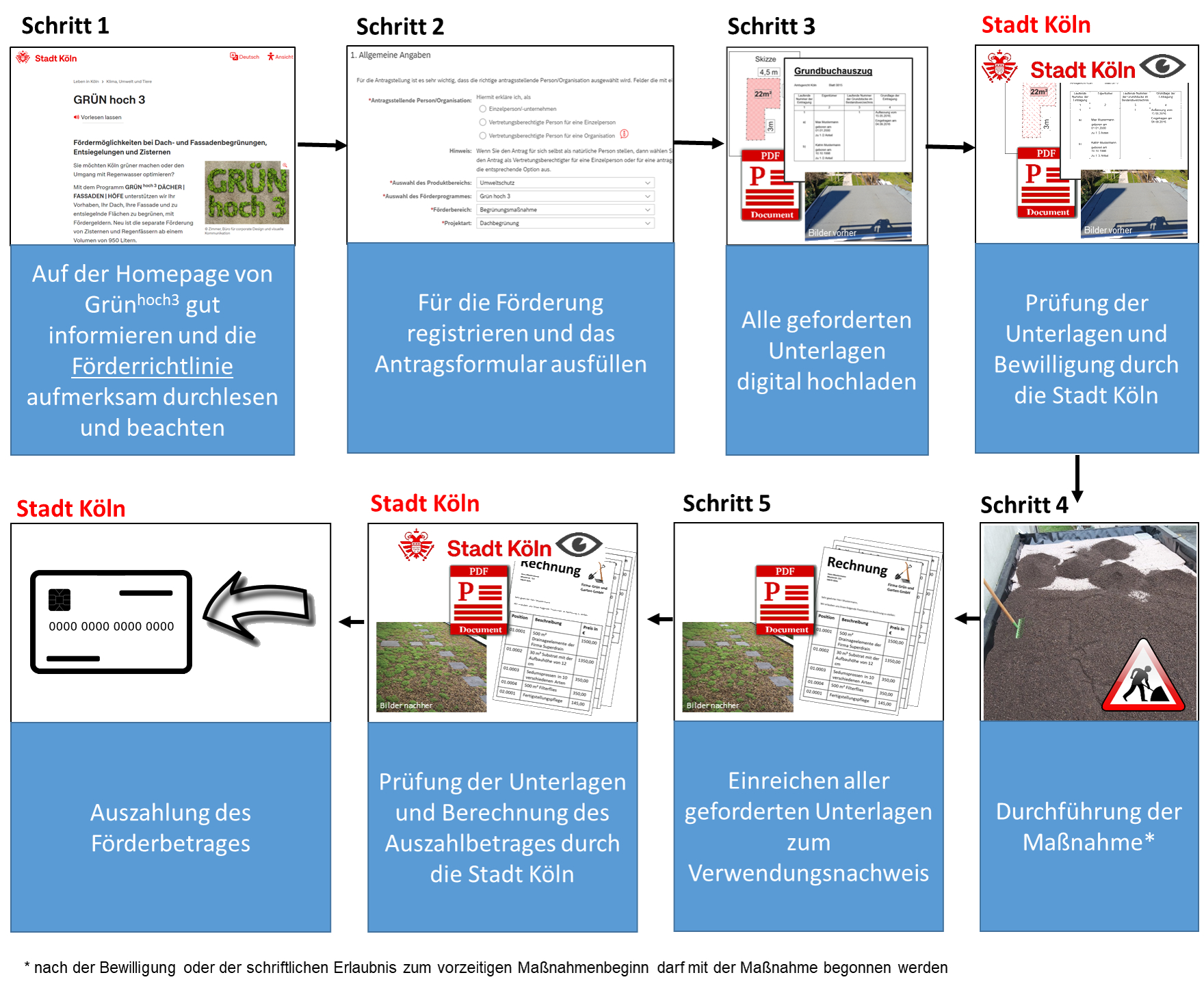 - Vor Bewilligung des Zuschusses darf nicht mit den Begrünungsarbeiten begonnen werden. Als Beginn ist bereits der Abschluss eines Leistungs- oder Liefervertrages zu werten.