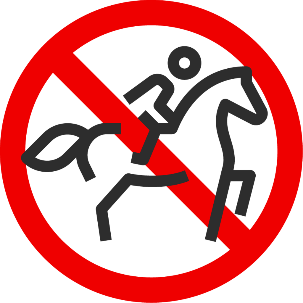 Reiten verboten, außer auf gekennzeichneten Wegen