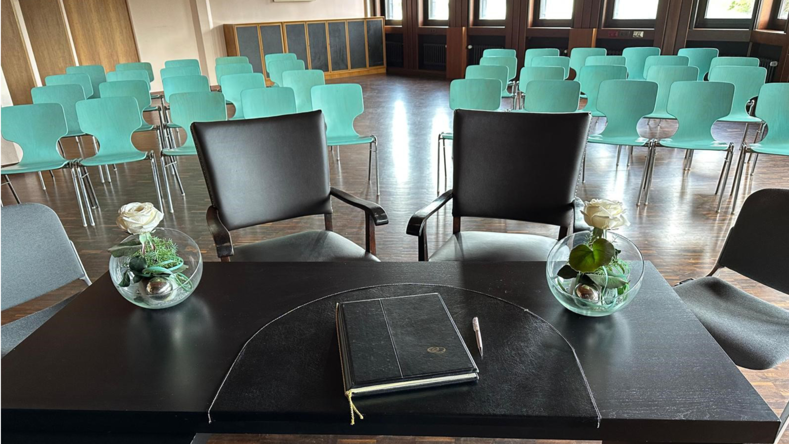 Einmal im Monat haben Sie die Möglichkeit, sich im Bürgeramt Porz trauen zu lassen. Der Eingangsbereich ist für Rollstuhlfahrende eingeschränkt zugänglich. Das Trauzimmer im Matthias-Chlasta-Saal bietet neben Ihnen und einem*r Fotograf*in Platz für maximal 80 Gäste. Zu dieser Personenzahl zählen auch Kinder jeden Alters sowie Ihre Trauzeug*innen. Der Zugang zum Trauzimmer und Foyer ist barrierefrei.