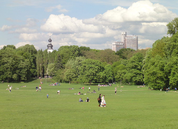 Im Süden des 40 Hektar großen Parks bildet der Militärring die Grenze. Ausflüge ins Grüne müssen aber dort nicht enden, denn über eine Fußgängerbrücke geht es weiter in den Äußeren Grüngürtel.