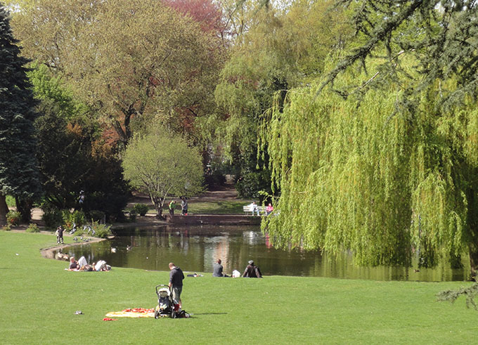 Der Kontrast könnte kaum größer sein: Während auf dem Wiener Platz das Leben pulsiert, herrscht einige Meter weiter im Mülheimer Stadtgarten erstaunliche Ruhe. Dieses grüne Herz im Zentrum des Stadtteils kann sich mehr als sehen lassen. In der rund 6,5 Hektar großen Grünanlage finden sich eine große Wiese, ein kleiner Wald und schön anzuschauende Trauerweiden am Ufer des Teichs mit turtelnden Wasservögeln.