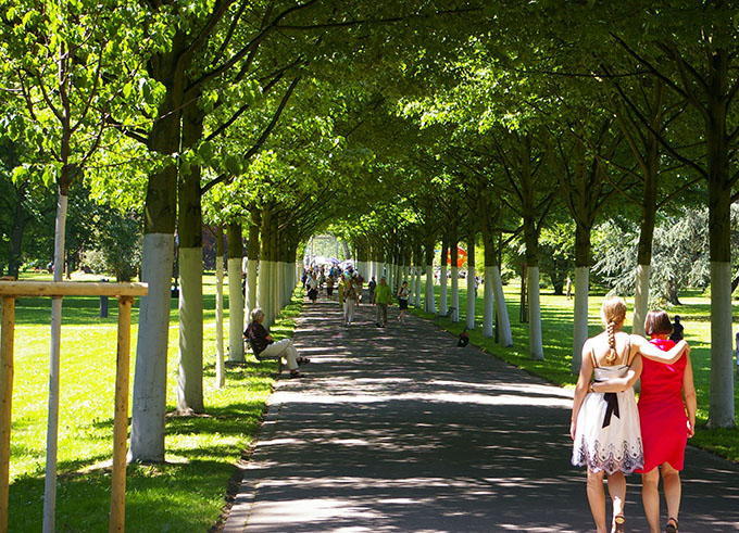 Immer einen Ausflug wert ist der Stammheimer Schlosspark im Kölner Norden. Der Landschaftsgarten zählt zu den ältesten und bedeutendsten in der Stadt. Die rechtsrheinisch gelegene zwölf Hektar große Anlage liegt direkt am Rhein gegenüber dem Stadtteil Niehl. An der Uferseite ist der Park überwiegend durch altes Mauerwerk aus Backstein eingefasst.