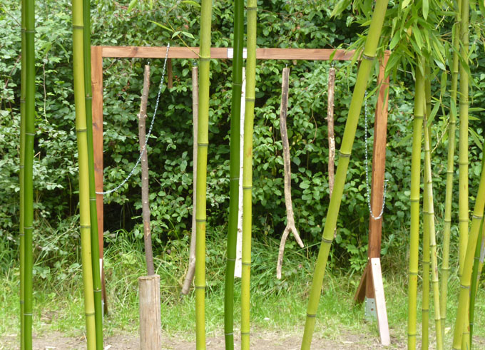 Auf dem Fußtastpfad kannst du barfuß und mit geschlossenen Augen über verschiedene Böden laufen. Kannst du Kieselsteine, Rindenstücke und Wiese mit den Füßen erkennen und unterscheiden?
