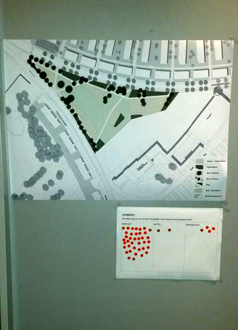 Der konkretisierte Entwurf "Parkbögen" wurde den in einer weiteren öffentlichen Veranstaltung am 7. Juni 2017 anwesenden Bürgerinnen und Bürgern vorgestellt. Die Beteiligten fanden viele ihrer Anregungen wieder und die Resonanz auf die Gestaltungsideen des Planungsbüros war sehr positiv.