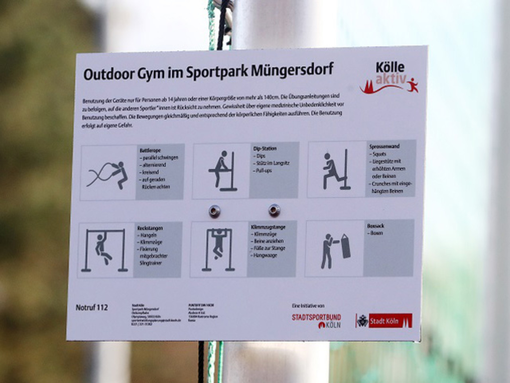Für alle Fitness-Erprobten bietet die Fitness-Anlage im Freien – Outdoor Gym – auf der Ostkampfbahn im Sportpark Müngersdorf die Möglichkeit zum intensiven Workout/Muskeltraining. Ob