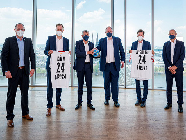 In Köln, mit Blick auf den Dom, haben der Deutsche Handballbund und die Europäische Handball-Föderation gemeinsam die Spielorte bekanntgeben, in denen vom 10. bis zum 28. Januar 2024 das Handball-Leben pulsieren wird. Düsseldorf soll mit einem Zuschauer*innen-Weltrekord Schauplatz des Eröffnungsspiels werden. Vorrundenspielorte der ersten Men’s EHF EURO mit 24 Teams und insgesamt 65 Spielen in einem Gastgeberland sind Berlin mit der deutschen Handball-Nationalmannschaft sowie Mannheim und München.