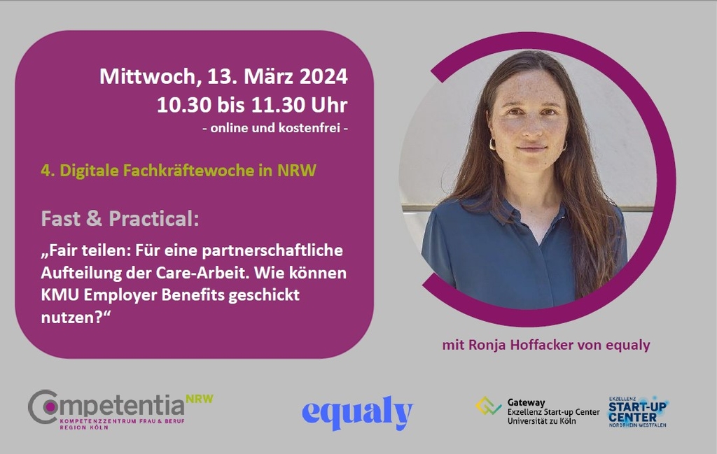 Suchen Sie als kleines oder mittleres Unternehmen nach Möglichkeiten, Ihre Mitarbeiter*innen zu binden? Es könnte zum Beispiel ein neues Element für Ihr Employer-Benefit-Portfolio sein. Dann lassen Sie sich zu den Möglichkeiten von equaly, der App für die faire Aufteilung der Care-Arbeit in Partnerschaften informieren.
