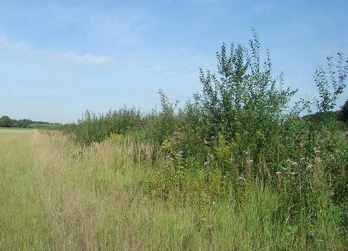 Aufgrund der herrschenden Klima- und Bodenbedingungen würde hier von Natur aus ein Buchenwald wachsen. Zur Abschirmung gegen die Autobahn wurde ein Waldrand aus heimischen Sträuchern angelegt.