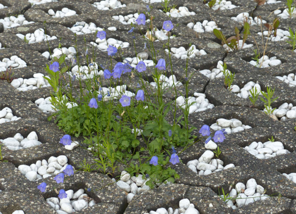 Auch Wege müssen nicht komplett versiegelt sein. Pflaster mit breiten Fugen kann als Niststätte für Wildbienen fungieren, Rasengittersteine ermöglichen einen Bewuchs mit bunten Blumen und Rindenmulch lässt eine Versickerung zu.
