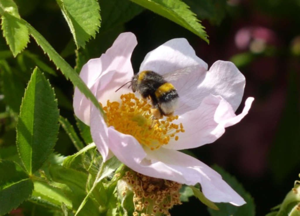 Wildrosen bieten im Gegensatz zu den gefüllten Zuchtformen im Frühjahr Nektar und Pollen für Bienen und Schmetterlinge. Diese bestäuben dabei die Blüten und sorgen damit für Früchte, die wiederum eine Nahrungsquelle für Singvögel darstellen. Da Singvögel ihren weiteren Nahrungsbedarf durch Insekten decken, Schädlinge wie Blattläuse eingeschlossen, schützen sie dadurch die Wildrose.