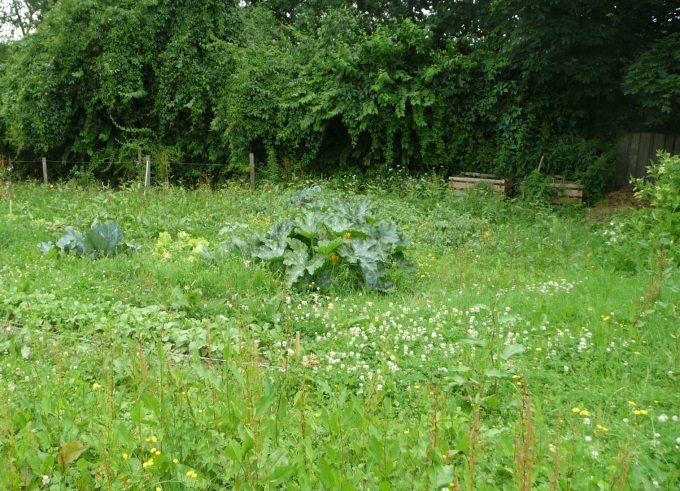 Dafür ist es sinnvoll, in einer Ecke, die sich für den Anbau von Pflanzen nicht eignet (Schatten, schlechter oder versiegelter Boden), eine Fläche als Materiallager und Arbeitsfläche einzuplanen.