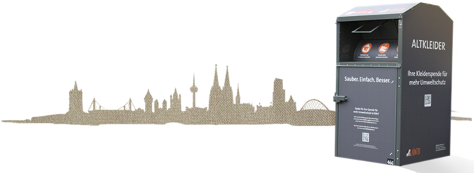 Zusätzlich können Altkleider an den Wertstoff-Centern der AWB in Ossendorf und Porz, dem Wertstoffhof in Niehl sowie bei gemeinnützigen Sammlungen und Hilfsorganisationen in Köln abgegeben werden. Alle Standorte und weitere nützliche Informationen zur Altkleidersammlung in Köln erhalten Sie auf der Internetseite der Abfallwirtschaftsbetriebe Köln GmbH.