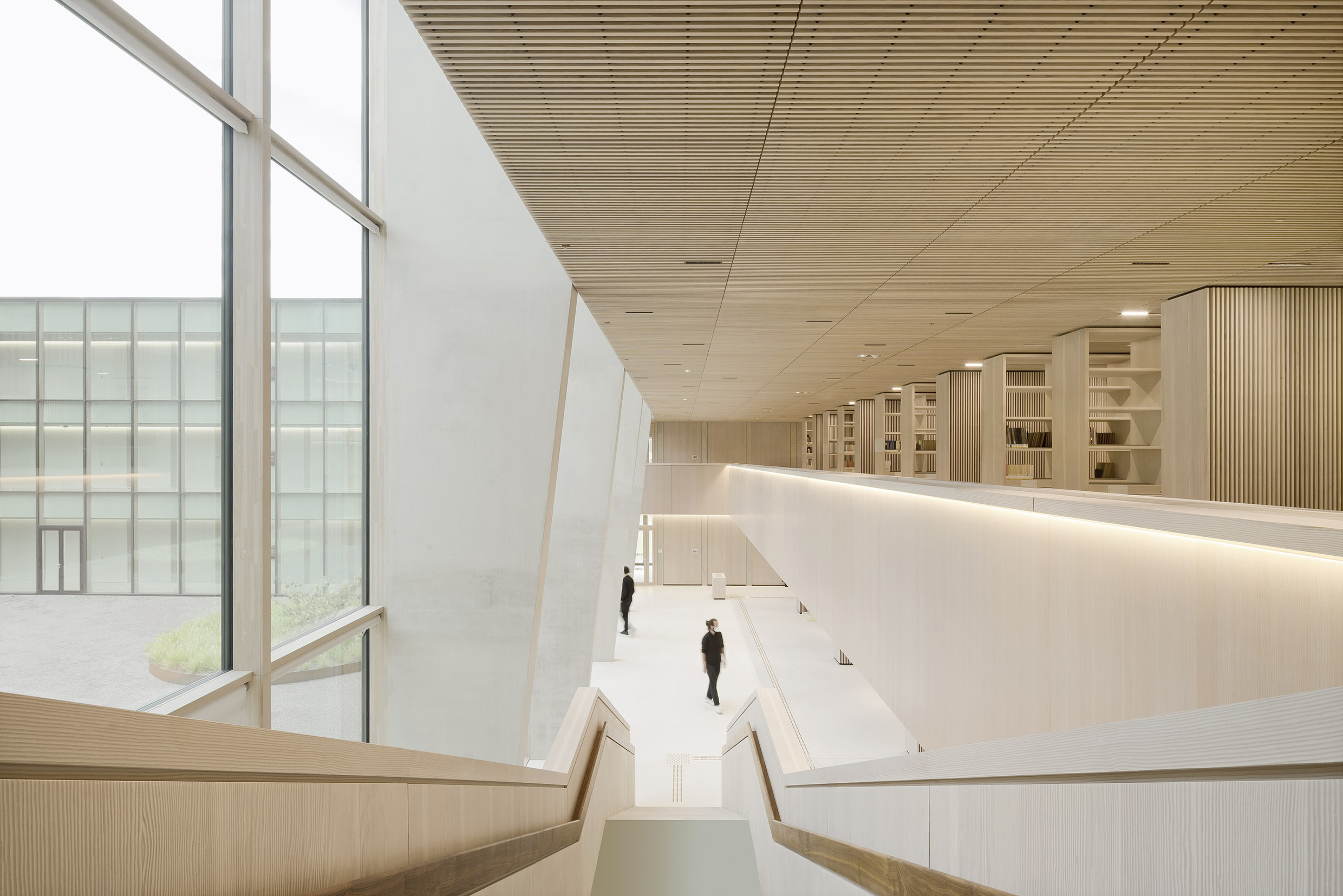 Das lichtdurchflutete Foyer strahlt eine einladende Atmosphäre aus. Mit Blick in den grünen Innenhof kann man im Lesesaal in einer schönen Umgebung recherchieren und Quellen studieren. Die neuen Räume und Magazinflächen für das Historische Archiv und das Rheinische Bildarchiv entstehen auf einer Nutzfläche von 14.493 Quadratmetern/Bruttogrundfläche von 22.510 Quadratmetern. Für die Bestände des Historischen Archivs stehen im Neubau rund 50 Regalkilometer für kartoniertes Archivgut zuzüglich Flächen für Urkunden und Großformate sowie 460 Planschränke zur Verfügung. Für das Rheinische Bildarchiv werden eigene Magazinräume eingerichtet.