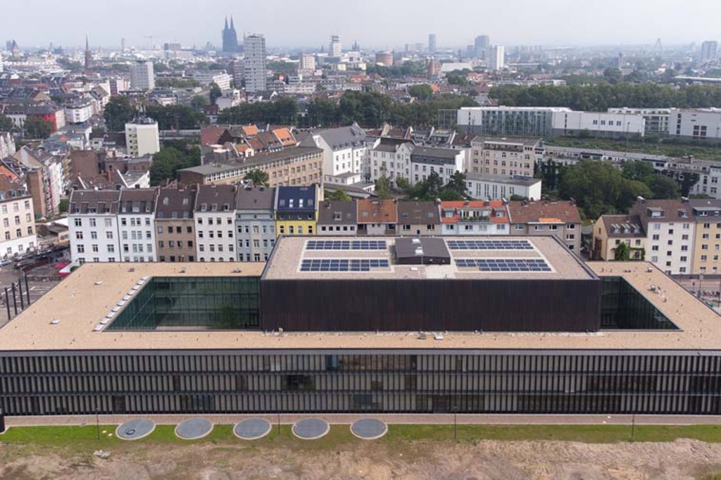 Wir haben am Eifelwall Europas modernstes kommunales Archiv geplant und errichtet, in dem das Historische Archiv und das Rheinische Bildarchiv ihre neue Heimat finden. Gebaut wurde nach den Plänen des Architekturbüros Waechter + Waechter Architekten aus Darmstadt. Eine hochkomplexe Gebäudetechnik sorgt für neun verschiedene Klimazonen, um für alle Archivalien optimale konservatorische Bedingungen zu gewährleisten. Zur effizienten Nutzung der Energie ist ein Eisspeicher mit 400.000 Litern Wasser im Erdreich verbaut worden.