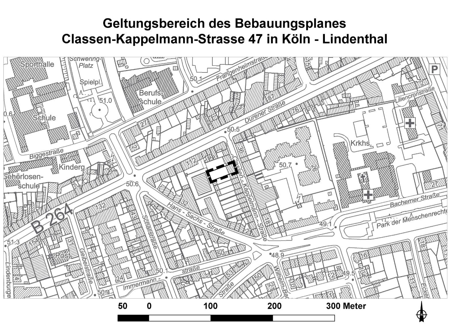 Der Stadtentwicklungsausschuss hat in seiner Sitzung am 28. September 2023 beschlossen, nach § 2 Absatz 1 Baugesetzbuch (BauGB) einen Bebauungsplan für das Gebiet Gemarkung Müngersdorf, Flur 69, Flurstück 543 aufzustellen – Arbeitstitel: Classen-Kappelmann-Straße 47 in Köln-Lindenthal. Ziel ist es, Flächen für Gemeinbedarf zur Bereitstellung von Gemeinbedarfsflächen der benachbarten Umgebung festzusetzen. Das circa 0,06 ha große Bebauungsplangebiet liegt im Stadtbezirk Lindenthal, Stadtteil Lindenthal.