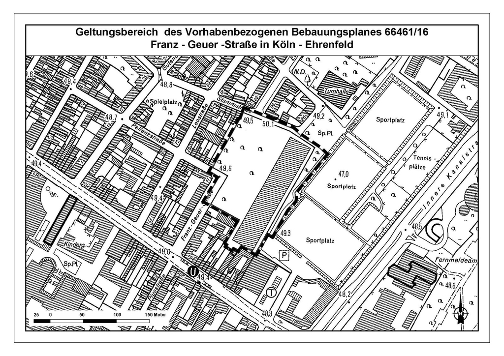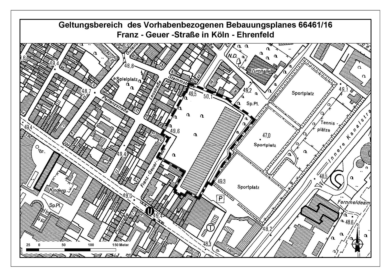 Der Entwurf des vorhabenbezogenen Bebauungsplans Nummer 66461/16, Arbeitstitel Franz-Geuer-Straße in Köln-Ehrenfeld, wird zur Beteiligung der Öffentlichkeit veröffentlicht.