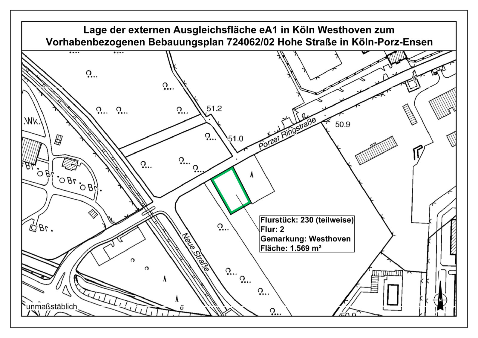 - sowie hinsichtlich extern festgesetzter Ausgleichsflächen im Bereich Gemarkung: Westhoven, Flur 2, Flurstück 230 (teilweise).