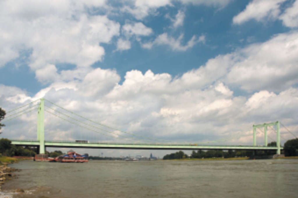 Leverkusener RheinbrückeDie nördlichste Kölner Rheinbrücke. Erbaut 1961 bis 1965 als seilverspannte Balkenbrücke.